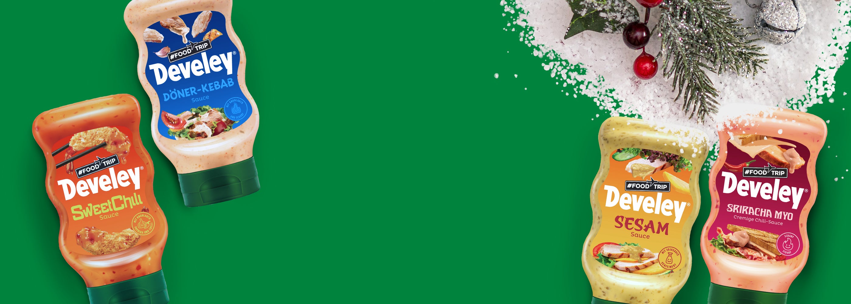 Develey Set mit Kebab Sauce, Sesam Sauce, Sriracha Myo und Sweet Chili Sauce (4x 300 ml)