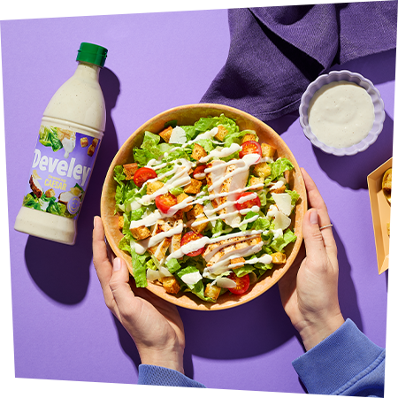 Das Develey Caesar Dressing mit seiner mild-cremigen Konsistenz verleiht Salaten das gewisse Etwas.